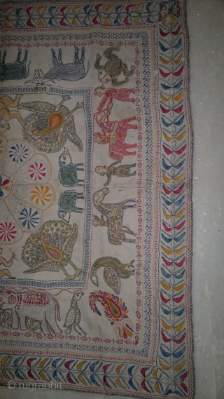 wonderful "kantha" from mushidabad(west bengal) , very intricate and fine work done. a pictorial textile with all figures of animals , human , birds etc may be used as a wrap for INFANT.