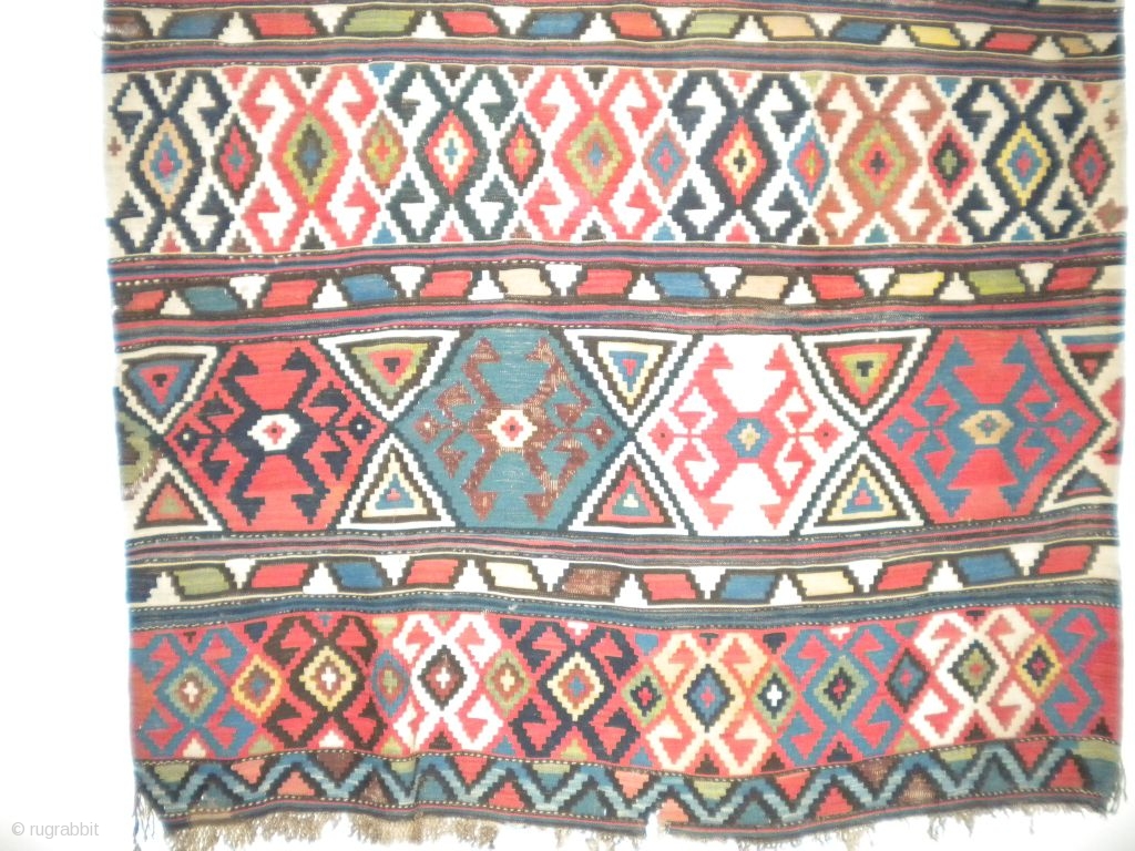 Like the radiohead song "No Surprises", there are no surprises with this 56"x54" inch ancient Shah-Savan kilim fragment. Even in this state, it is gorgeous. i have taken numerous pictures for you to get the lay of the land. Some of you could use this fragment for the wool for your restoration projects, but one of you will hang it on the wall to enjoy it's beauty.