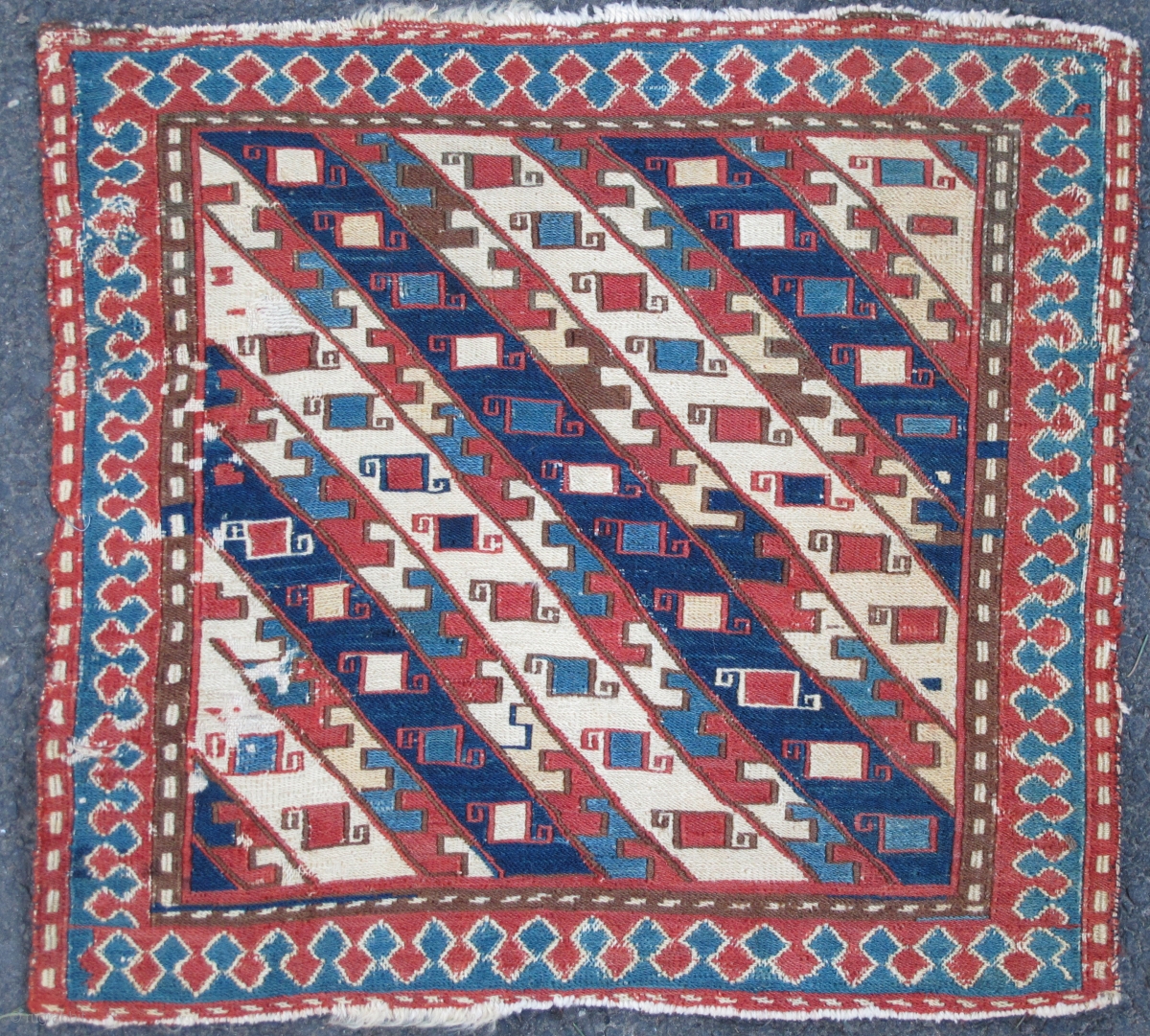 a most unusual Sumak Bag Face with warps in clusters of silk, wool, and cotton/silk wefting,