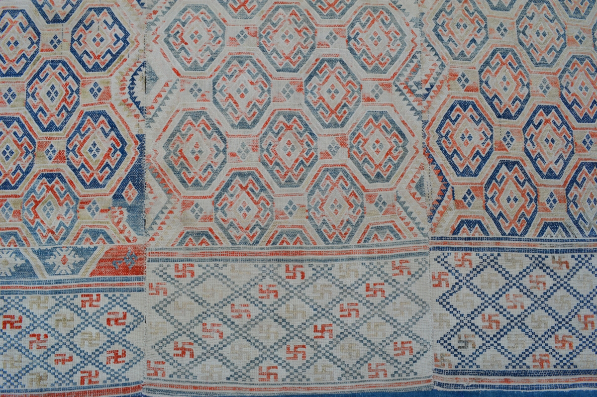 Chinese/Tujia wedding blanket - early 19th century - size without indigo cotton frame 110x117cm - size with indigo frame 132x161cm