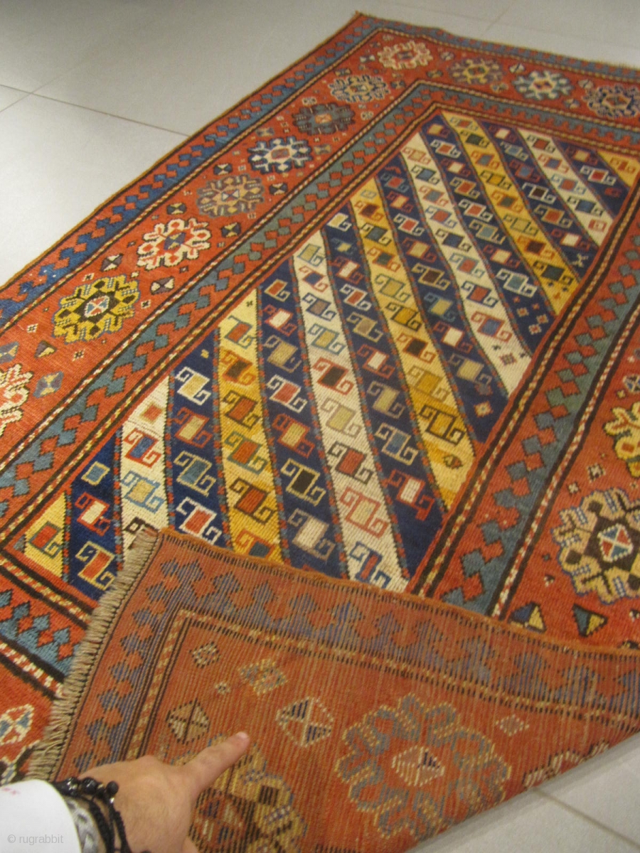 ad) Kazak Gendje silhani Caucasian antique rug, 19th century, perfect condition