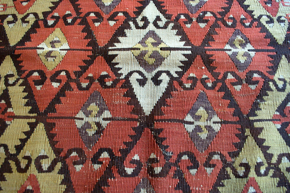 Small Central Anatolian "Elibelinde" Kilim with all natural colors including aubergine and shades of apricot/orange in good condition, probably 3rd quarter of 19th c. 3'0 x 4'10 ft. - 92 x 147 cm.