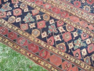 Two 19th century North West Persian runner fragments. These two beautiful pieces could work as one carpet, giving a size of approx' 12' x 8'.4". Or alternatively there is approx' 24' x 35" of one and 12' x 39" of the other that could be used as stair carpet or runners. Condition, two sections have been roughly stitched together, various old patches etc.