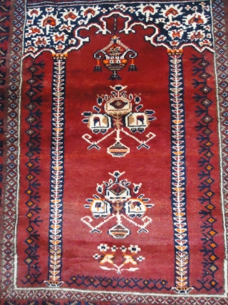 Gorgeous and Handsome Baluch Prayer Rug with perfect condition and no repairs,beautiful design.Shiny soft wool.Excellent pce.Size 3'8"*2'6".E.mail for more info.