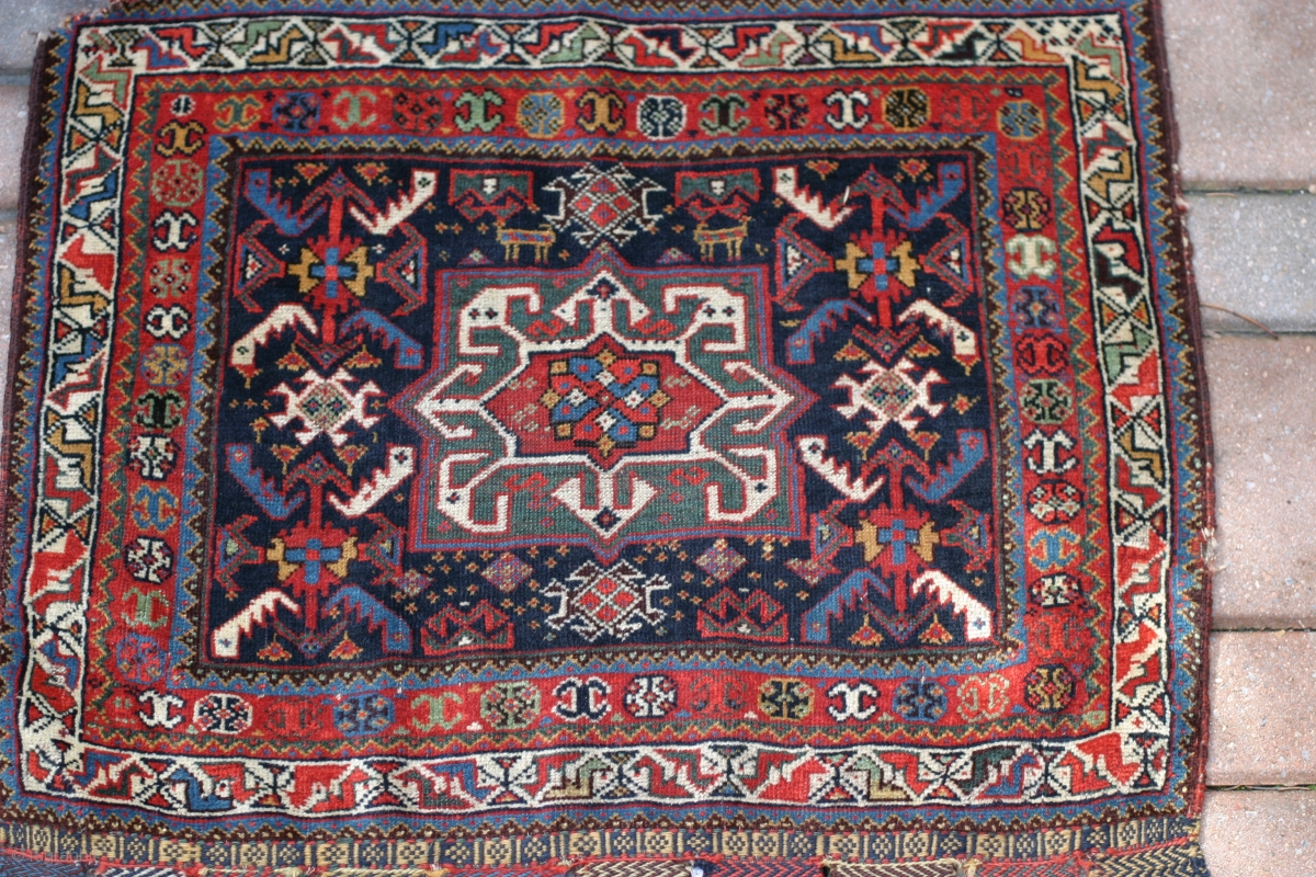 a lovely 19th century Khamseh bagface with very nice colors and good pile. Some losses to two corners.
