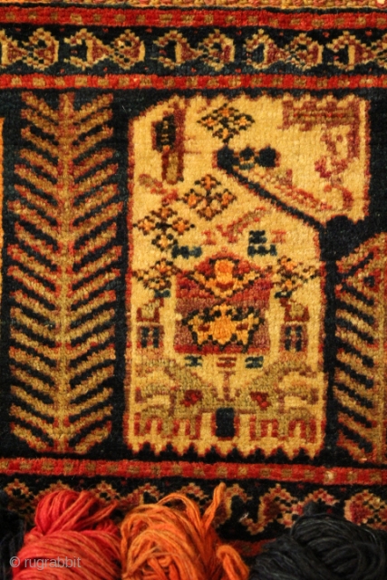 Very unique 80-90 years old Persian Afshari hand-knotted piled chanteh with original plain weave back with vegetable dyes & 100% wool