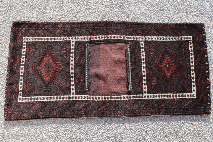 Persian Baluch Mashawi Sistan Saddlebag, all wool and vegetable based dyes Size: 58" (148cm) x 23" (60cm), ca1940+ , Excellent condition with very lustrous wool and spectacular dying.