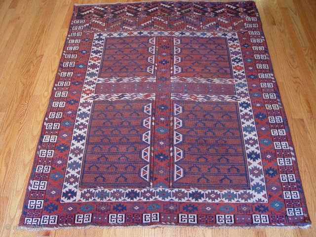 Turkmen Ensi, 4'2' x 5'5' , 100% wool both pile and foundation, very tightly woven, circa 1860-1880's,