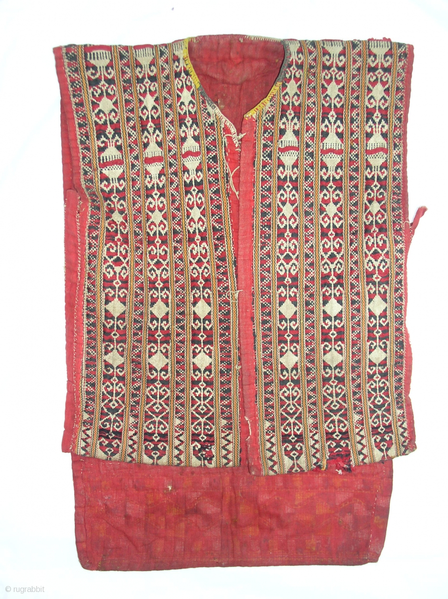 Ceremonial jacket, "bajuh" cotton, 24" long by 17" across. Iban people, Sarawak