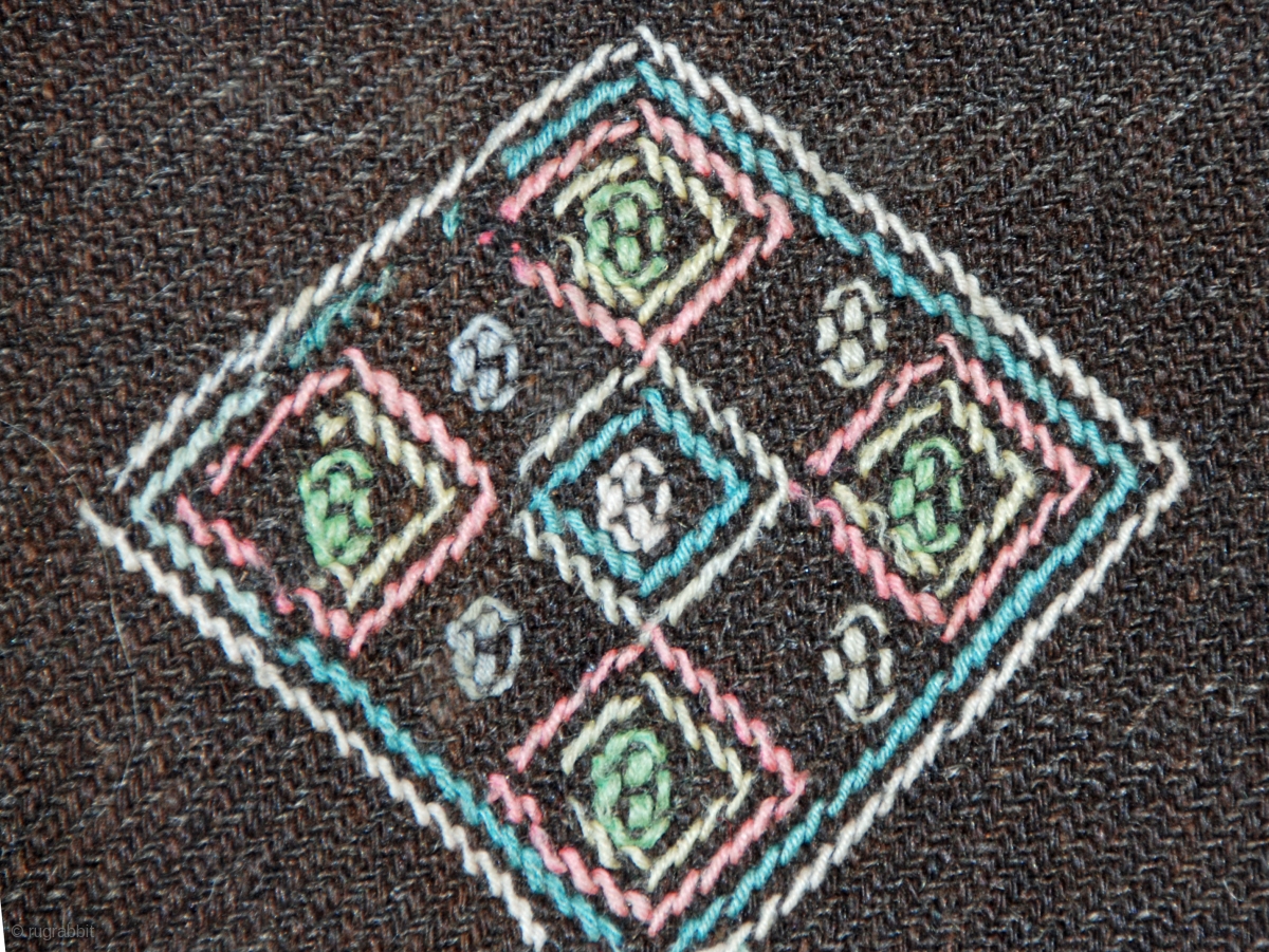 Rain cloak, "charlab", wool with supplementary weft brocade, 61" x 27"; Bhutan (2354)
