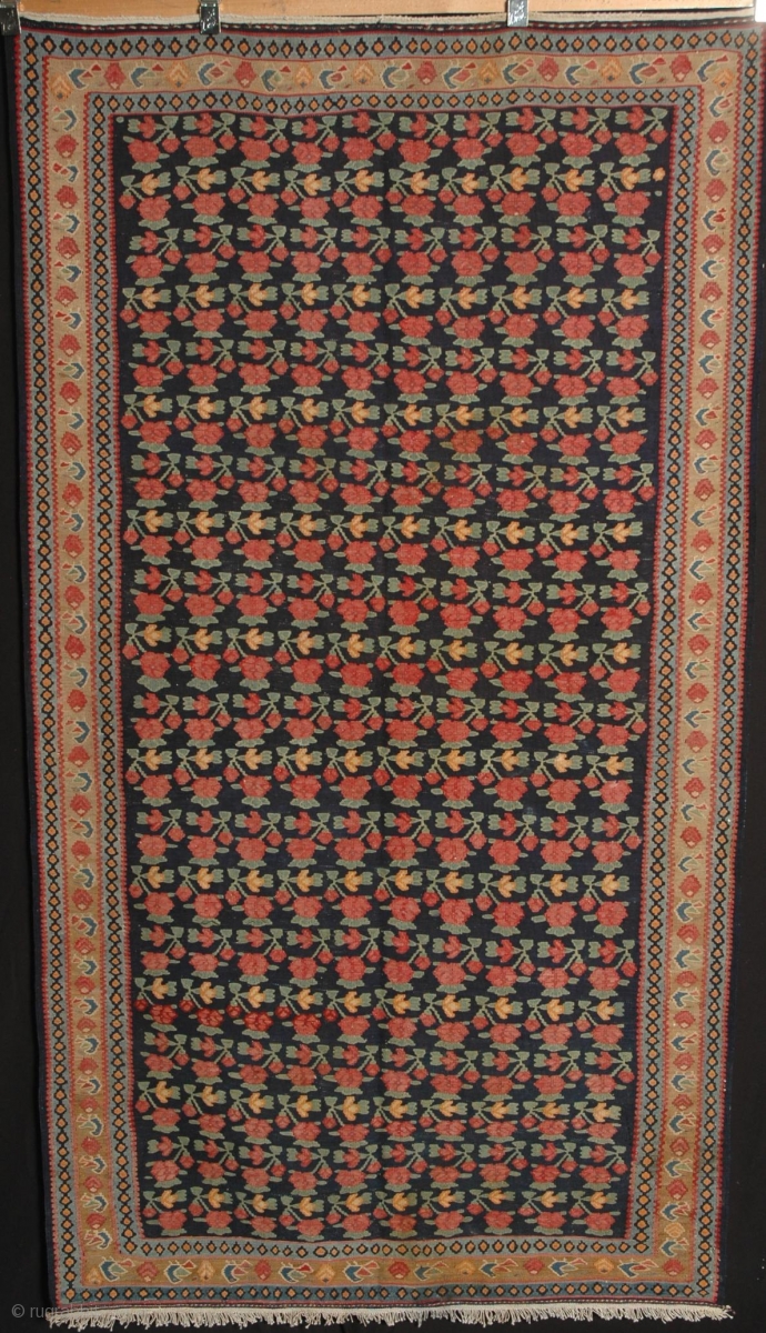 #12999 Antique Bijar Kelim, 266x127cm, Circa 1900, in very good condition apart from a 2cm reweave at one end,as shown in the image, which is very well done. Wonderful colours and a very collectable piece.