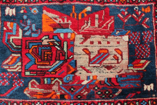 Very unique 70-80 years old Persian Afshari hand-knotted full piled chanteh with original abstract pattern & plain weave back with natural dyes & 100% wool category: Persian origin/type: Afshari / Abstract exclusive flower design age classification: 1940+ size: 9"(34cm) x 16.9"(48cm) condition: Perfect and in original condition ID(aprc): No. 260-499