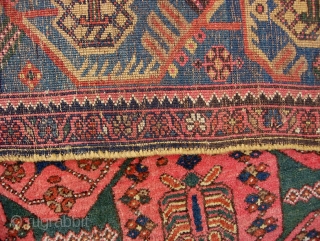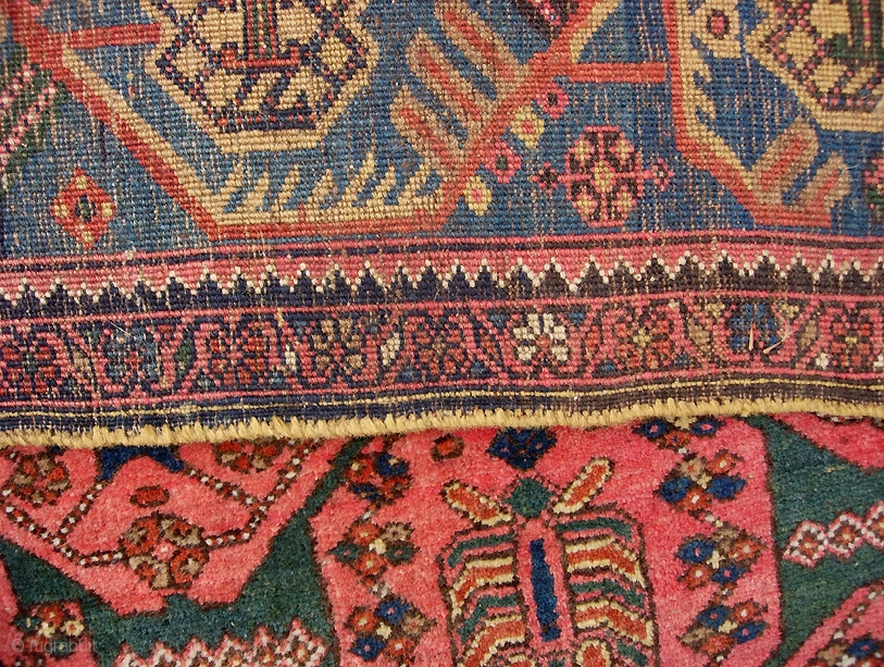 Bidjar 4 ft 6 inches by 6 ft 10 inches. Old one on wool foundation. Unusual design and great border. Beautiful estate rug in really super condition