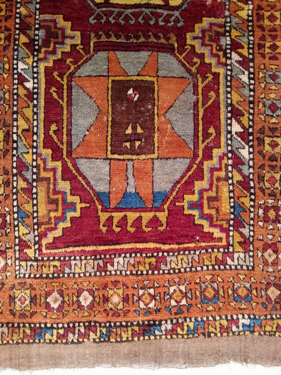 Anatolian Carpet, arround 1800, seize: 123 x 175 cm. a compareable piece is illustrated at "orient stars" Kirchheim collection page 260. Very beautyful colors and soft lustrous high floor.