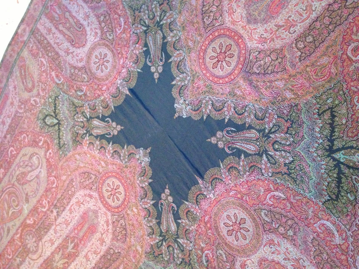 Beautiful French Woven shawl in very good condition apart few small holes, long size more than 3 meters, very fine weaving and a beautiful designe.