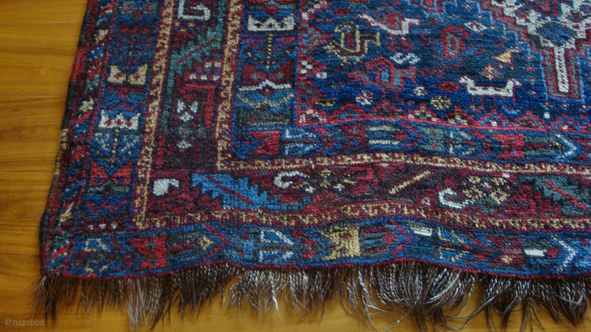 Early 20th century Qashqai 63 x 75 inches. Nice, mostly natural colors. One of the reds may be synthetic. Good condition. Even pile with a couple lower spots. 1/2 inch loss to one border. Recently professionally cleaned.