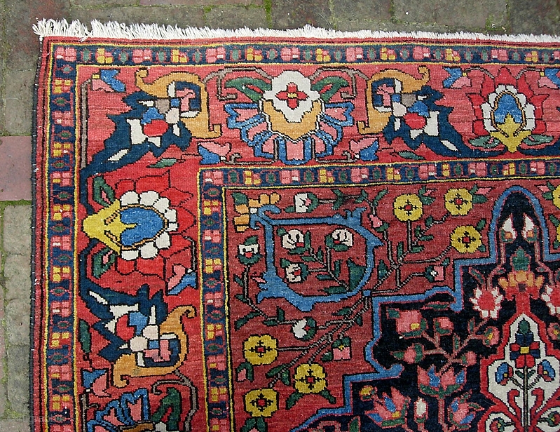 Bahktiari. 5 ft 2 inches by 7 ft 0 inches. Rug dealers overuse the word “gorgeous.” So i will just say it has some pretty darned nice colors... especially the yellow. Pile is lowest on one end but overall even. There is just a smattering of whit knots showing here and there but you have to look real careful to see them. $25 to ship in the us.