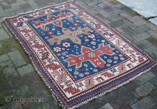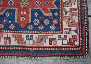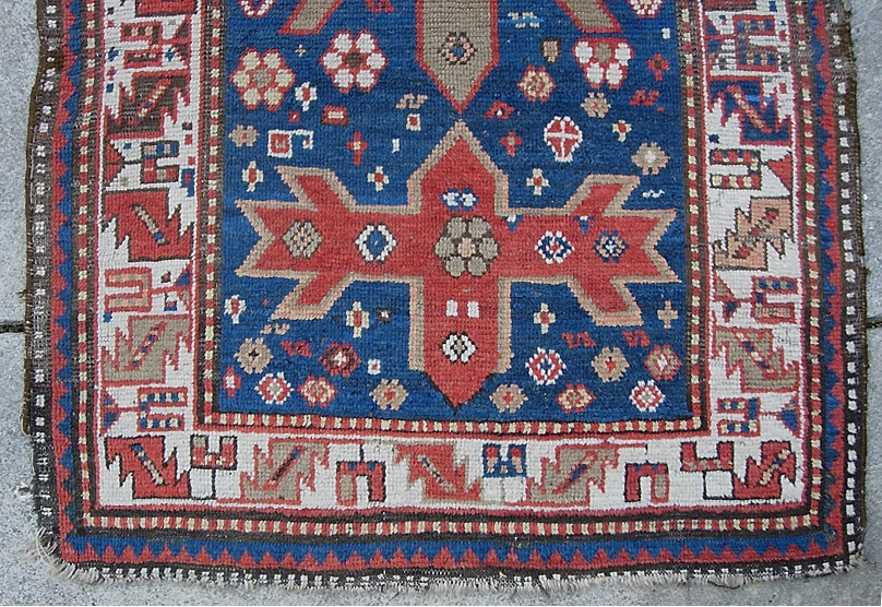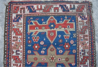 Old Kazak. 3 ft 5 inches by 4 ft 5 inches. a restoration project. Photos tell the story. $15 to ship in the us.