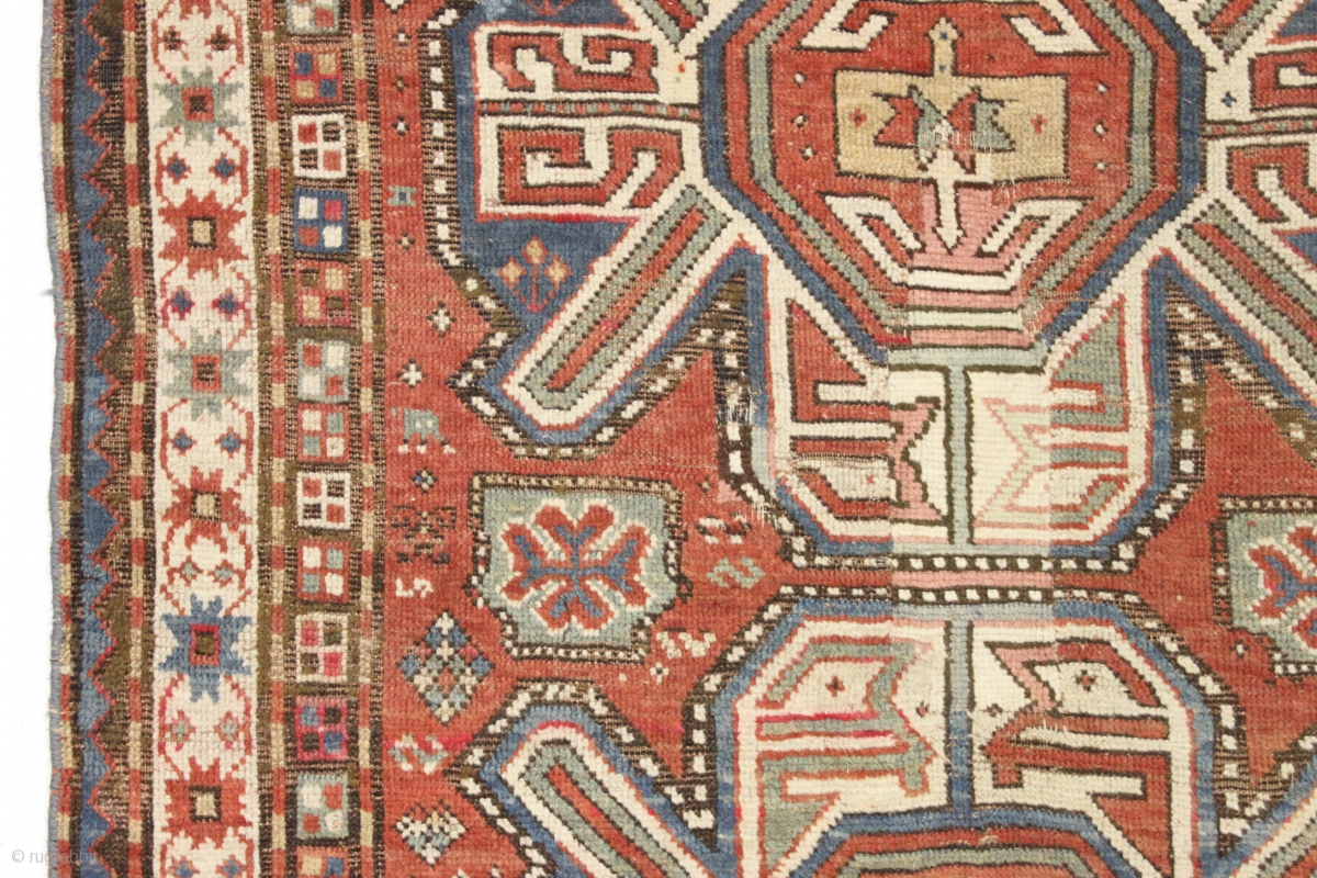 Antique lenkoran rug. Nice soft colored ground with pretty yellows and greens. Not to long, not to short, just right. Condition issues but ample pile for repair. "as found", very very dirty. 19th c. 7'5" x 4'2"