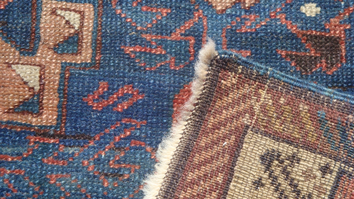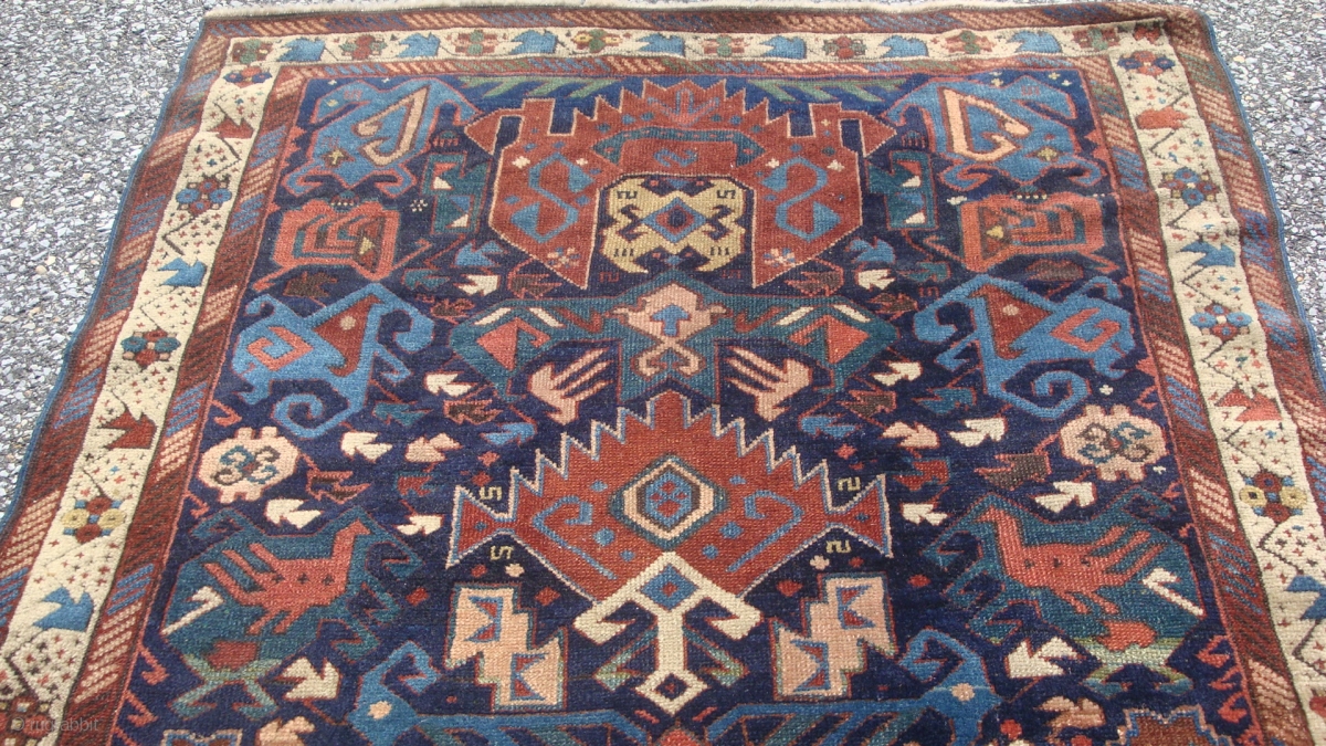 19th century Caucasian Alpan Kuba 3'5'' x 5'3''. Wool foundation. Good condition. Some restoration and minor old re-piling in the white border one side of the rug.