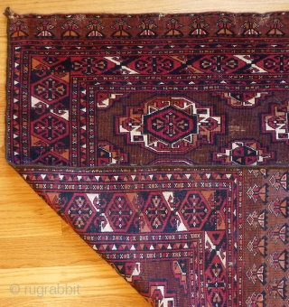 Fine Antique Saryk Chuval. 45 x 36 inches. Beautiful colors. Obvious wear in the center. Floppy handle. www.banjaratextiles.com