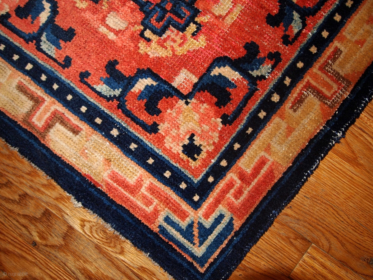 #1b361 Chinese 'Ningsha" rug 2.2' x 2.3' 1880,in original condition: has some age ware.