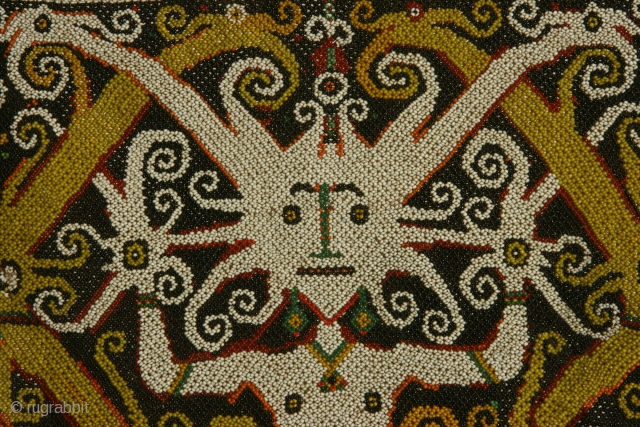 Panel attached to a baby carrier, Iban tribe Borneo, glass beads and cotton, 19th century, 12 x 13 inches