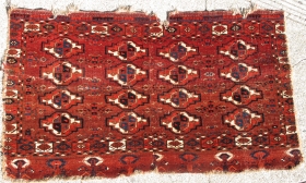 • These fragments are the two elem panels of what must have been a great and early Abdal, Yomut sub-group main carpet. ... read more