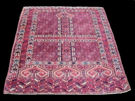 • Chodor Main Carpet, Mid 19th century. approx: 6' x 8'. Beautiful aubergine ground. Contact for condition details.
