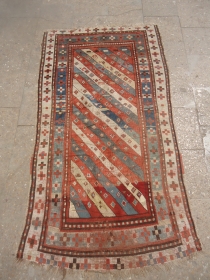• Caucasian Rug with great natural colors and age,as found without any repair or work done,beautiful design.Size 4'10"*2'10".E.mail for more info and pics.