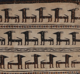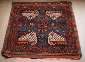 • pretty rare Afshar bag face. The design of the blue-ground bag faces consists of four white stylised animals arranged around a central ... read more