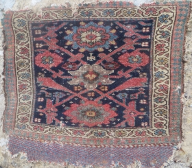 • sold: Northwest Persian bagface with unusual field design, 19th century, good soft colors. 25x 22 inches. Visible edge wear and very ... read more