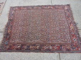 • Antique botah rug 80" x62" Probably from the Khamseh group. Reasonably presentable thin/low-pile with a couple of small holes and ... read more