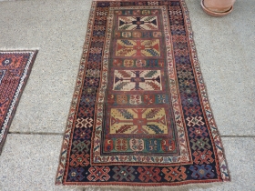 • sold thank you! Antique Caucasian pile rug in somewhat distressed condition. Unusual pattern and a rich array ... read more