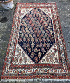 Late 19th century Kashguli rug. Fine weave with a loose handel. Some old repairs and a few small areas of low pile, ... read more