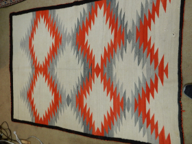 Gorgeous Antique Navajo hand woven wool rug, it measures 2'5" x 4'6" ft. great condition, colors are gold, gray, black, red, white, ... read more