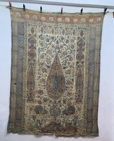 Antique Fabulous Block Printed Kalamkar Fabric Textile Cloth.Size 165x120 Cm.Some Damages Kindly See Pictures Carefully Please.Contact For More Info And Price Please
