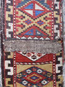 Rare Kyrgyz pile animal trapping band (detail, back and front).11" x 39". Fragment. c. 1850. Email: patrickpouler@gmail.com