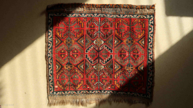 Richly coloured early Shah Savan soumac bagface, mounted, with incredible fine quality. Depicting a multi-coloured flock of double headed birds. The jewel ... read more