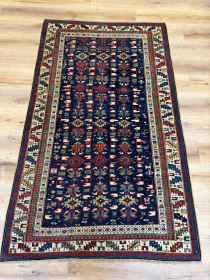 Antique Caucasian Armenian Kazak– ca. 1900 Size: 115 × 182 cm Bold Armenian Kazak rug featuring large cruciform medallions on a deep blue field, ... read more