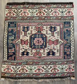 Very unusual antique 19 c Shahsavan mafrash end panel with animals. All natural dyes size 52 x 48 cm. ... read more