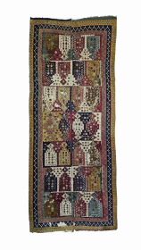 Caucasian, possibly Shahsavan sumack mafrash end panel. Size is cm 45x52 ca. Tribal, wild, childish drawing. Considering the introduction of fuchsin, I'm thinking ... read more