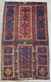 Colorful and old Baluch bagface (74 cm x 73 cm) Deep saturated colors, oxydized black, very small silk higlights. Very small moths ... read more