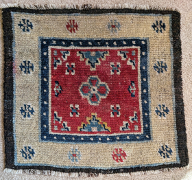 Colorful Tibetan khagangma seating square. Elegant drawing, older type with some wear, all natural dyes.