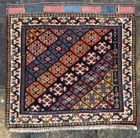 Late 19th century Quashgai bagface, fantastic condition, stunning colours, the work of a great weaver. 0.58m by 0.55m Contact gene@heritage-antique-rugs.com for more pics, price