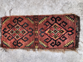 ,a fine antique Anatolian yastik, Sivas, first half 19c, 58 x 112 cm, 23 x 44 inches, Exhibited at ... read more