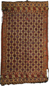 Antique Baluch (Timuri? Salor Khani?) small 5-medallion rug, 38 x 74 inches, very good condition. Second medallion from top contains a Vajra-like ... read more