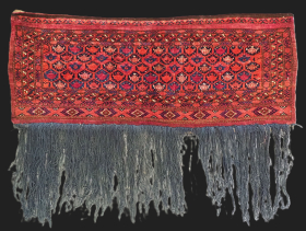 early Ersari Torba, 128 x 38 cm, low pile and some minor restoration, the selvedges are original. info@thomaswild.com