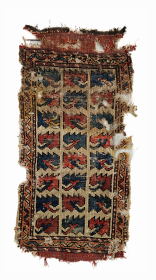 Richly coloured early Shah Savan soumac bagface, mounted, with incredible fine quality. Depicting a multi-coloured flock of double headed birds. The jewel ... read more