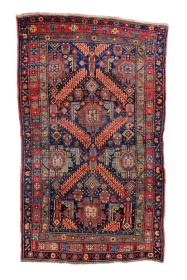Antique Persian Bidjar Rug, circa 1900. Featuring bold geometric medallions on a deep indigo field with rich red and ivory accents, framed ... read more